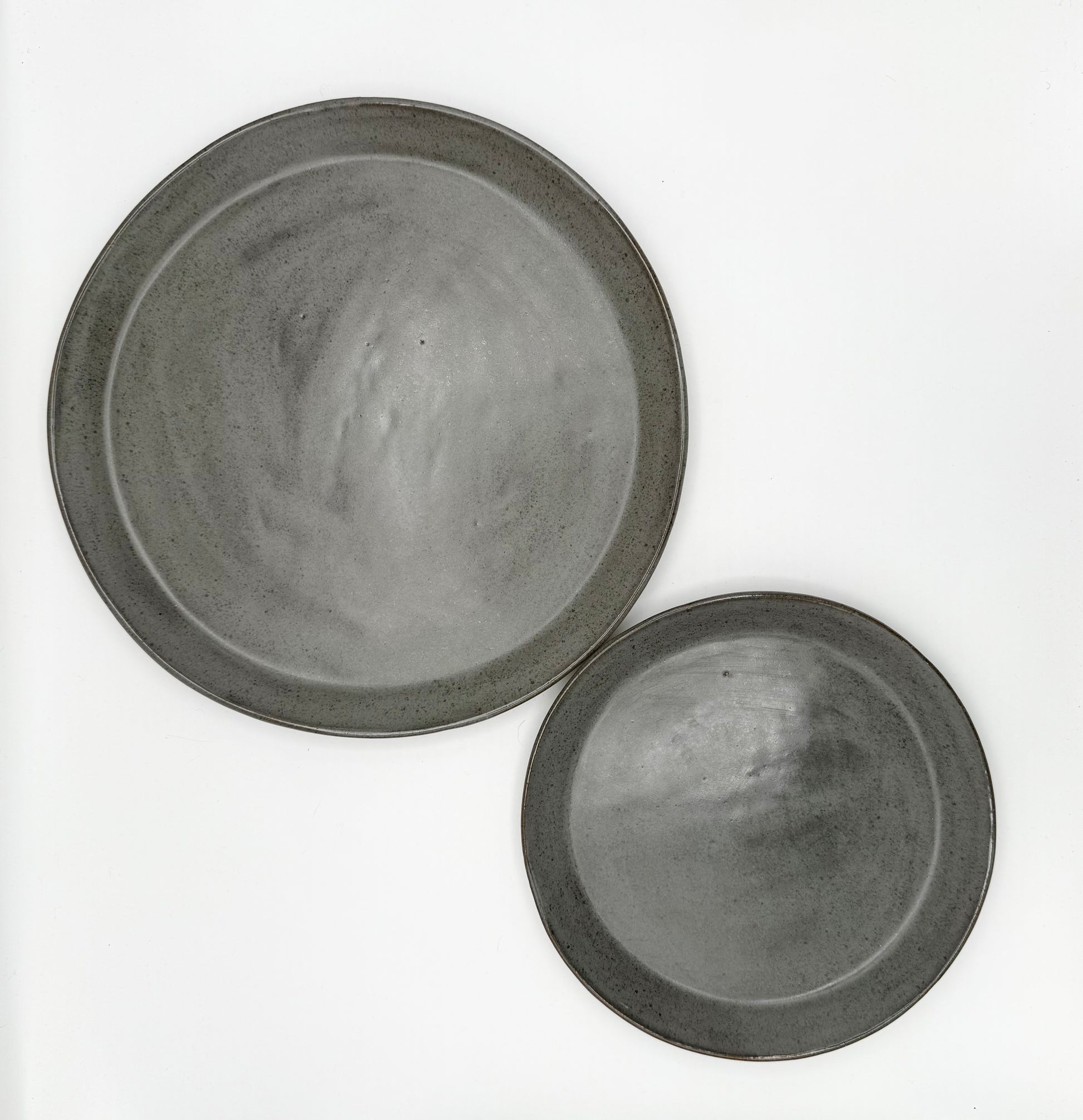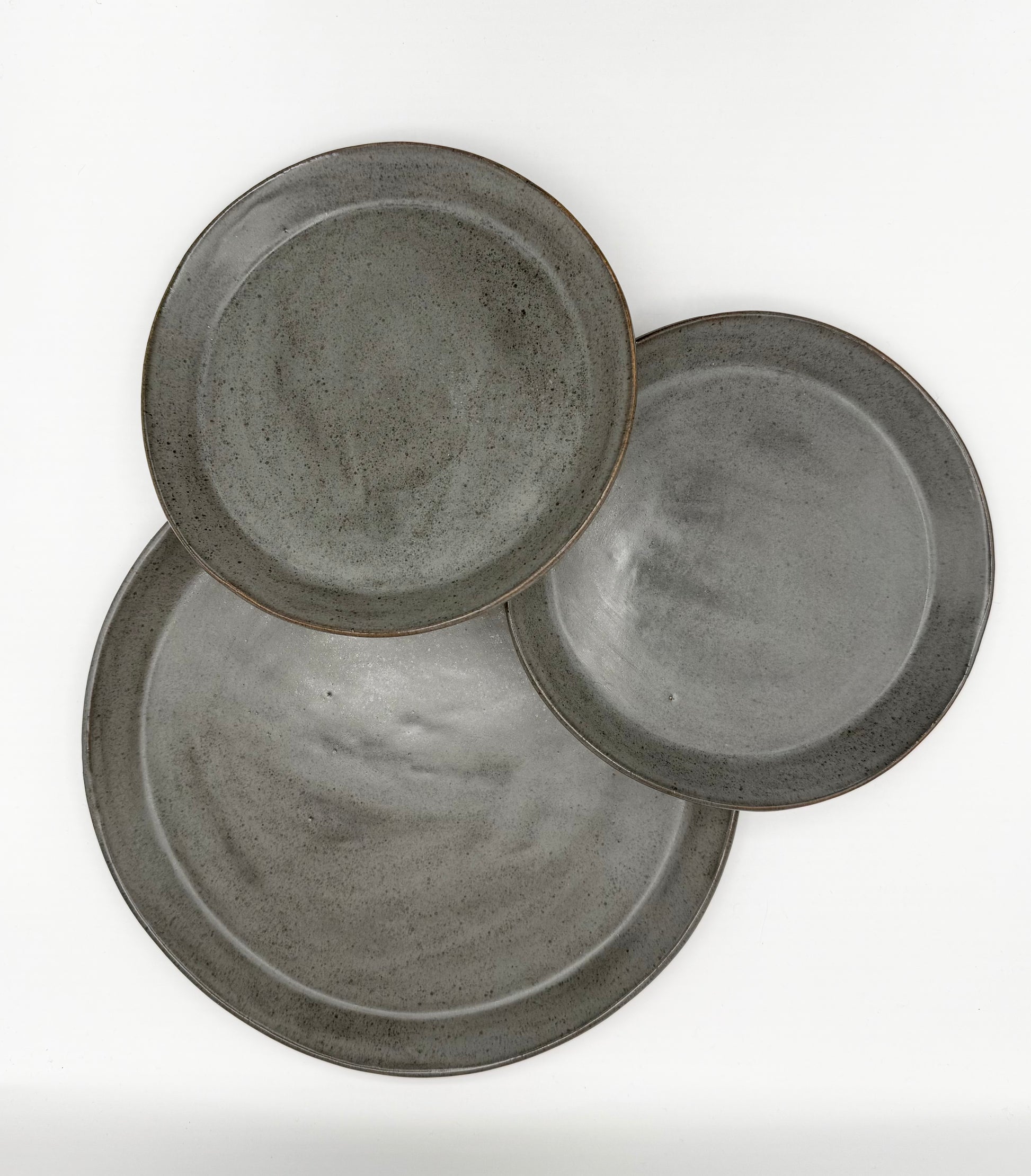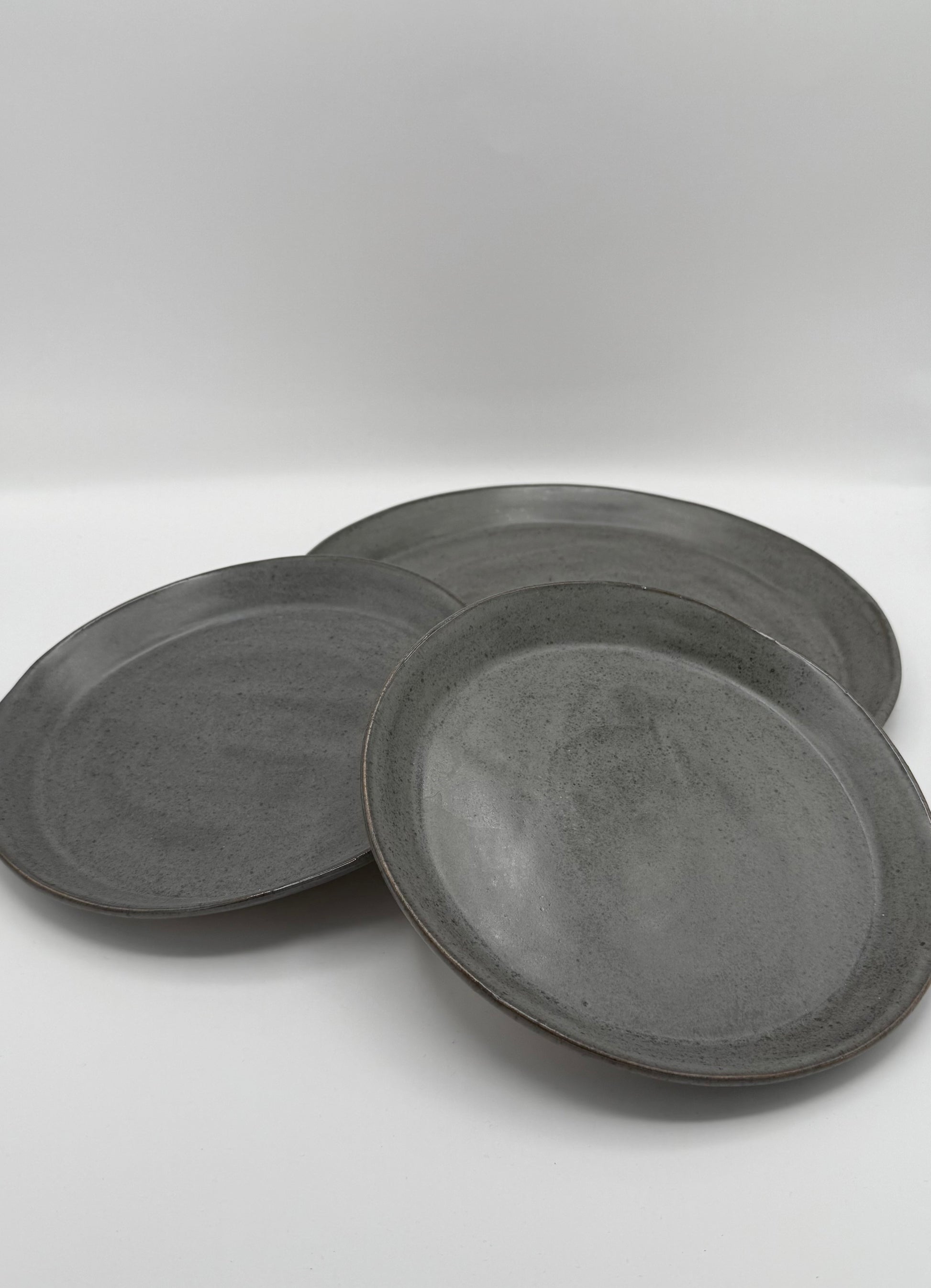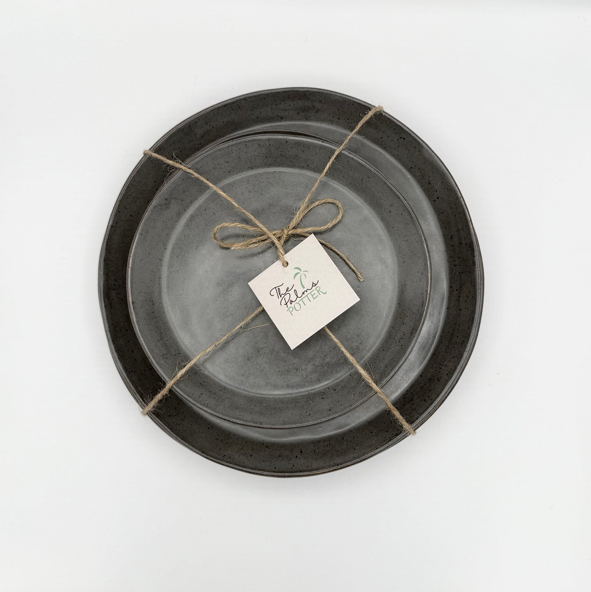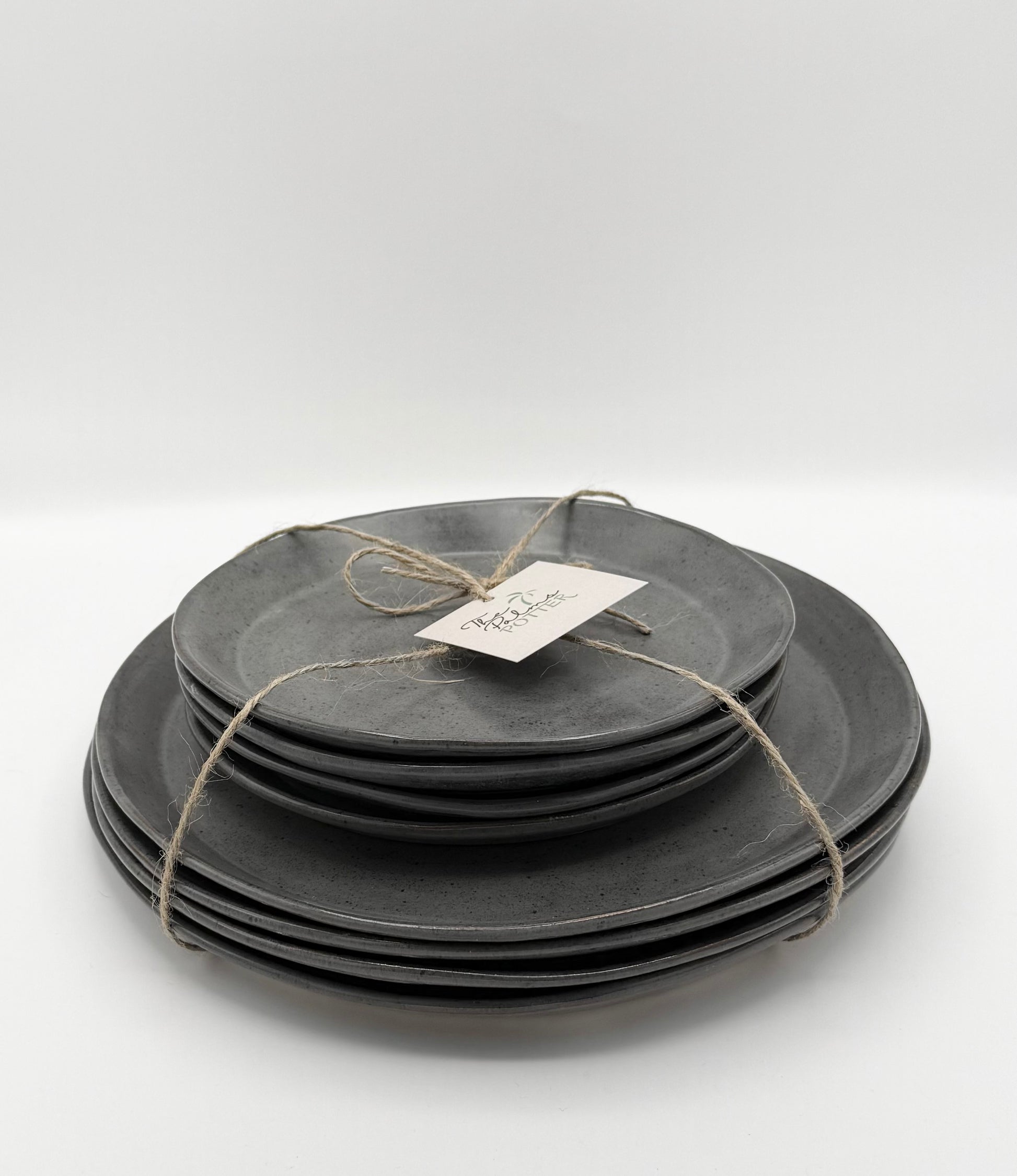 This minimalist dinnerware set in steel grey is meticulously handcrafted in my charming North Bay studio and features four dinner plates and four side plates. Elevate your dining experience with this lovely set, adding a touch of sophistication and style to your table.