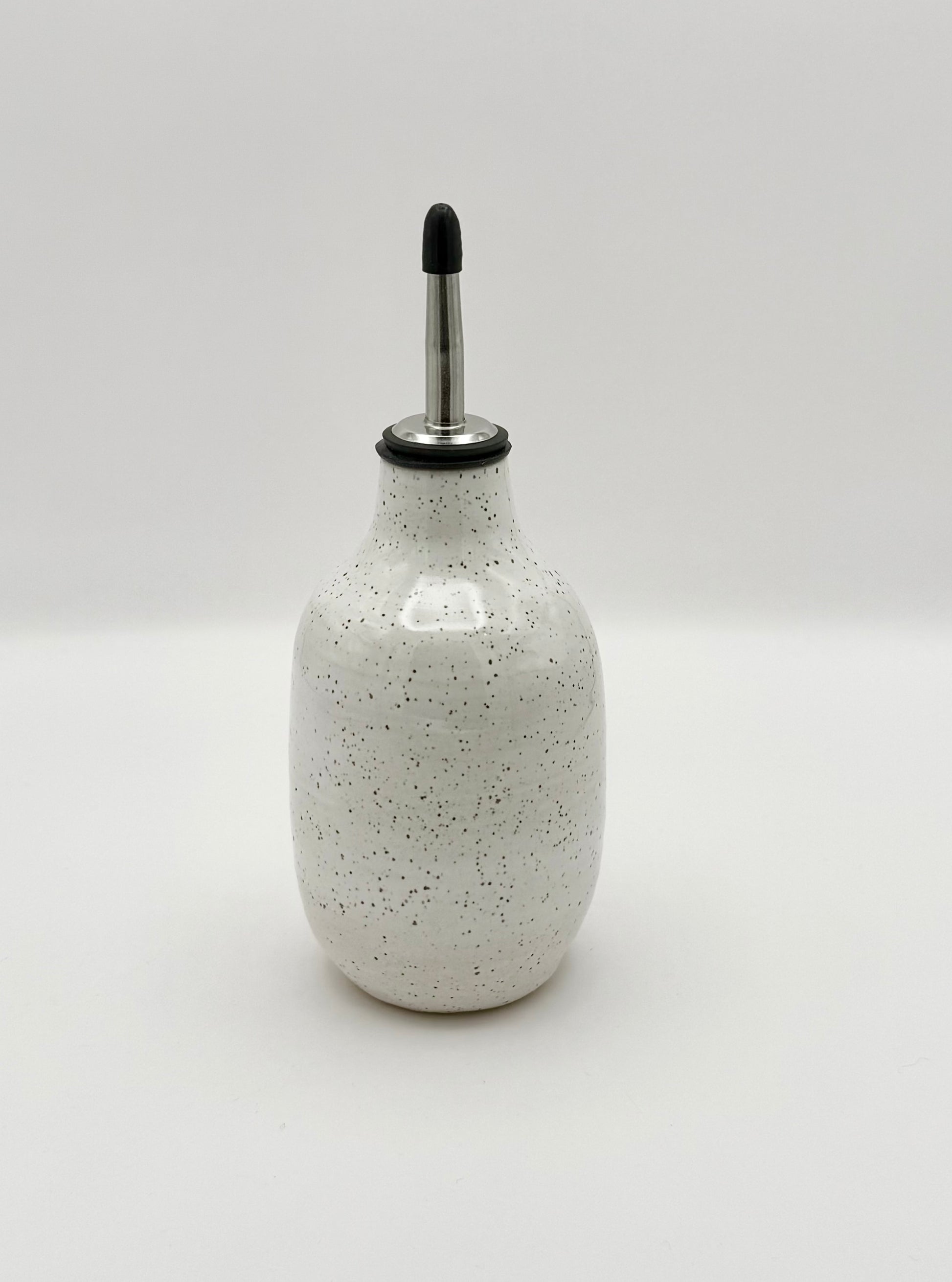 Crafted from wheel thrown and hand glazed clay, the olive oil and balsamic bottles make a functional addition to any kitchen, while adding a touch of style and artisanal charm to your counter and table. They are also dishwasher safe for easy cleaning.