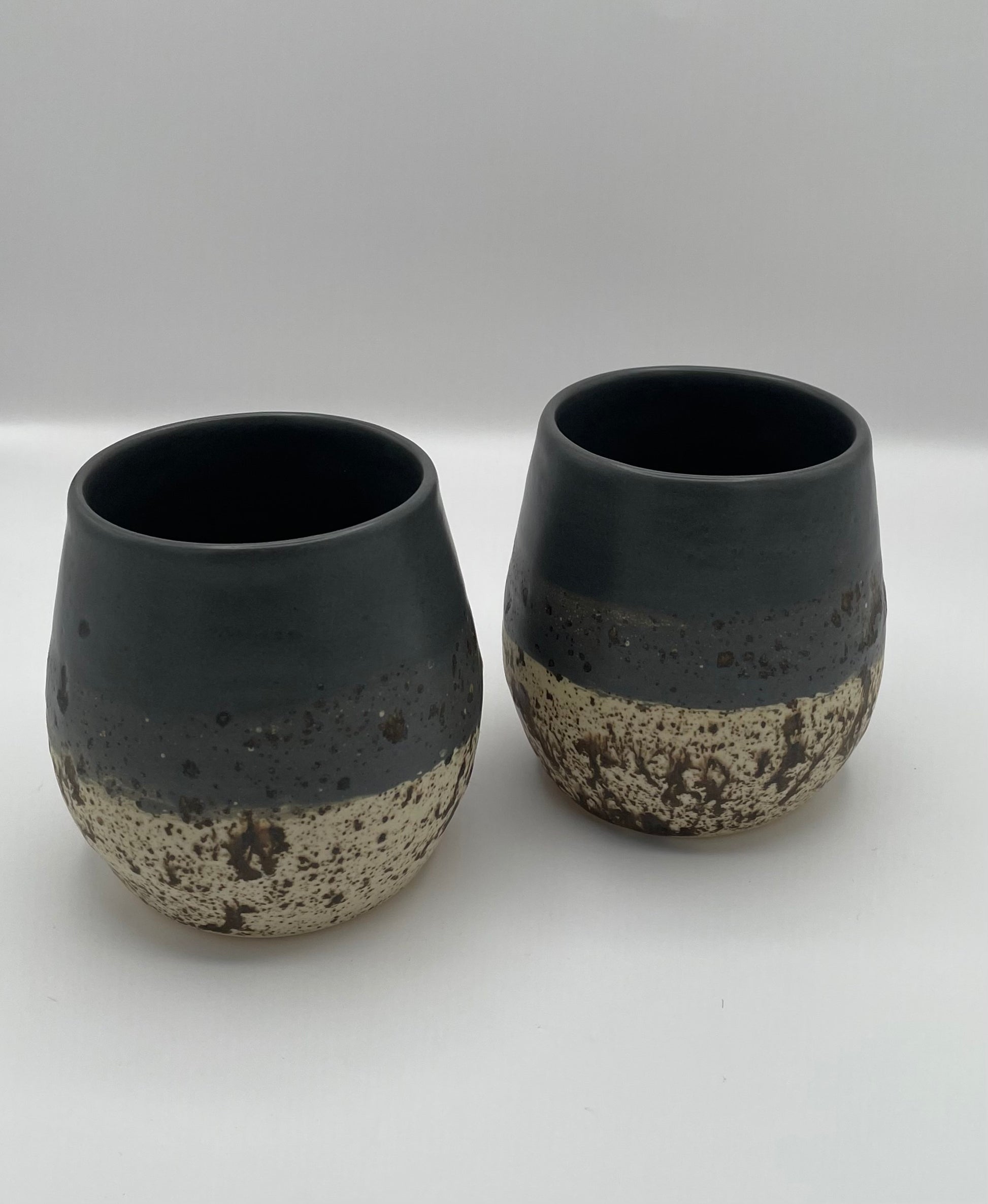 Hand-crafted in a North Bay studio, each item in this collection radiates a one-of-a-kind charm. The elegant satin charcoal glaze is highlighted by speckles of brown on cream, giving a contemporary and unique touch.